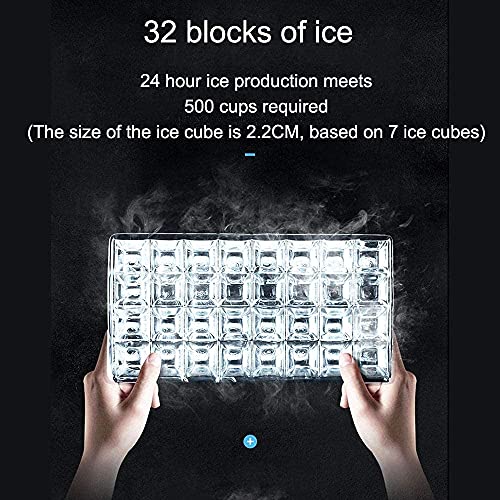 ★SCHNELLE UND HOHE EFFIZIENTE EISHERSTELLUNG: 55 kg pro 24 Stunden Kapazität kommerzieller Eisbereiter ermöglicht eine bequeme und effiziente Eisherstellung. 32 Eiswürfel in einem einzigen Schuss, 15 Minuten in einem einzigen Schuss, 24-Stunden-Eisproduktion, um den Bedarf von 500 Tassen zu decken.