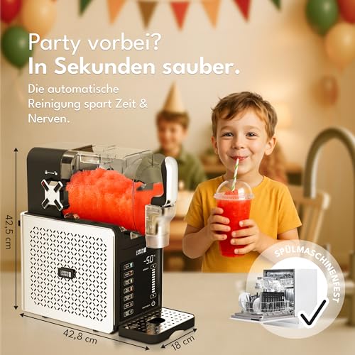 ✅ SCHNELLE KÜHLUNG & NACHTMODUS : Dank QuickFreeze-Technologie ist die Slushmaschine in nur 15 Minuten einsatzbereit und perfekt für spontane Genussmomente – Energiesparender Nachtmodus hält konstant 3–4 °C bewahrt Geschmack und Textur I Kein Neumixen am nächsten Tag notwendig