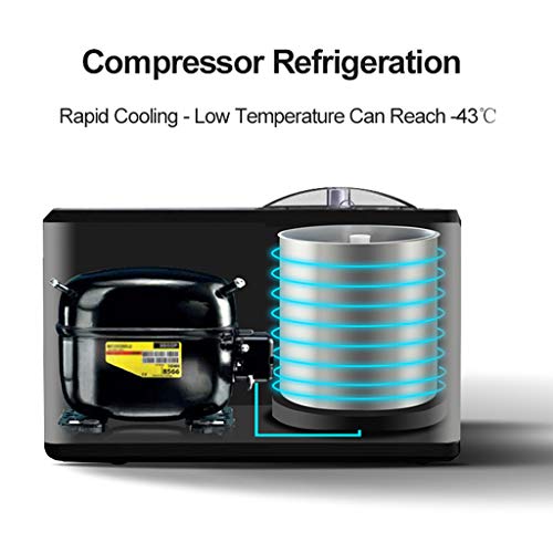 Kein Vorgefrieren: Intelligentes Design macht die Bedienung zum Kinderspiel! Die Gesamtheit, was Sie tun müssen, ist, Ihre Zutaten einzumischen, einen Knopf zu drücken, und das Kompressorkühlsystem erledigt den Rest.