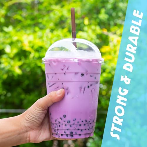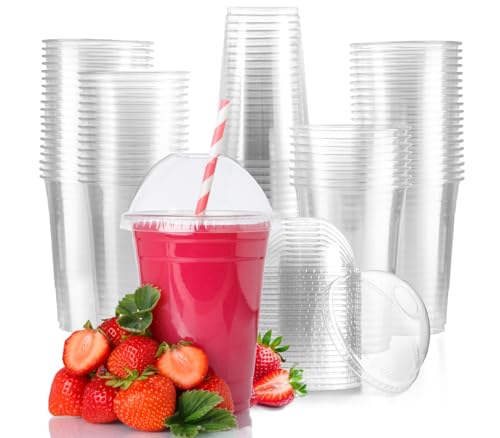 MAX SOLUTIONS Smoothie-Becher aus Kunststoff mit Kuppeldeckel, Eiskaffee, Milchshakes, Slushy Bubble Tea, wiederverwendbar, transparent, Einwegbecher, handwaschbar, 350 ml