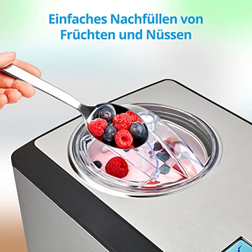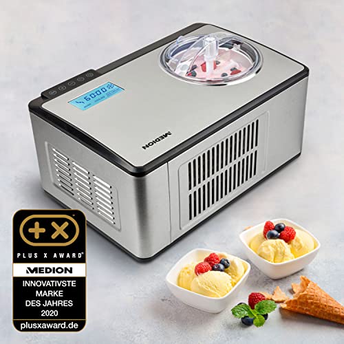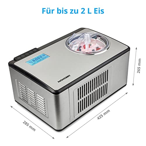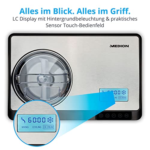 MEDION Eismaschine selbstkühlend mit Kompressor (2 Liter Eis, geeignet für Eiscreme Frozen Joghurt Sorbet, 180 Watt, Display, Sensor Touch, MD 18883)