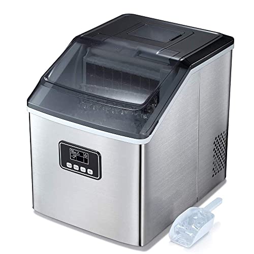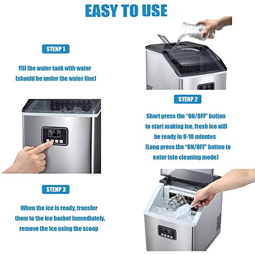 ★ [SMART DESIGN]: Immerhin wenige Tat erforderlich. Fügen Sie das Wasser hinzu, drücken Sie die Power und stimmen Sie die Eiswürfelgröße. Warten Sie einfach 6-8 Minuten und genießen Sie Ihre eisgekühlten Getränke. Automatische Wassermangelwarnung, Timer macht Überwachung überflüssig, Transparentes Sichtfenster.