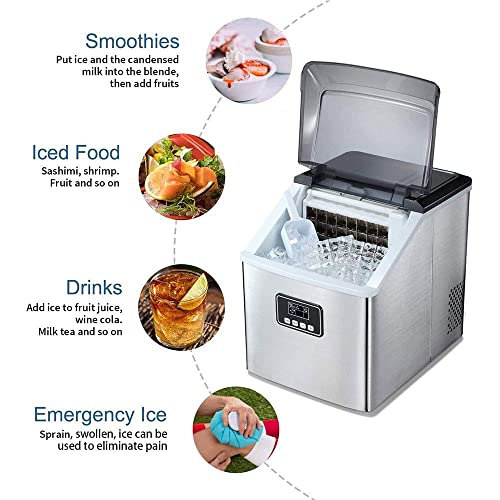 Eismaschine Eiswürfelbereiter Eismaschine Arbeitsplatte Home Edelstahl Selbstreinigende grafische Darstellung Eismaschine Arbeitsplatte