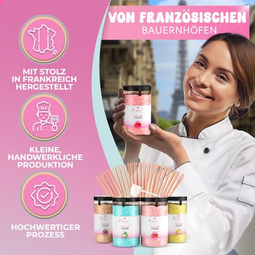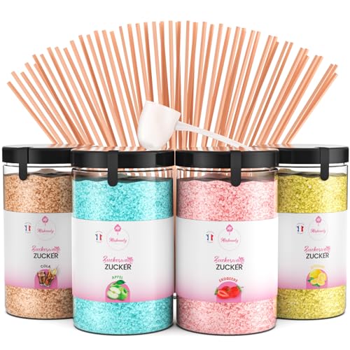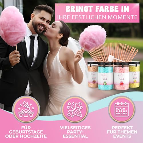Misskandy®, Zuckerwatte Zucker (Farbstoffe ohne Azofarbstoffe) / Charge (4 * 240Gr)/Erdbeere, Apfel, Cola, Zitrone/zuckerwattemaschine zucker/Aromazucker + 50 Stäbchen (Free)