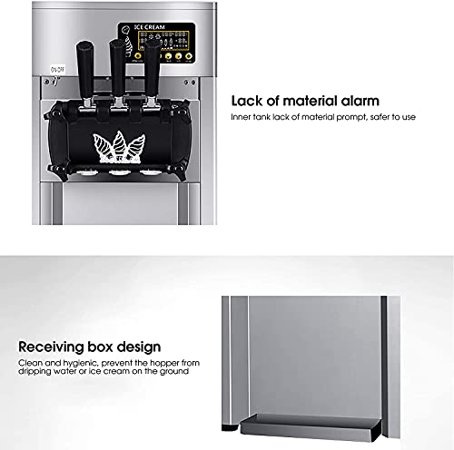MNSSRN Große Kapazität 3 Aromen Eismaschine, elektrischer kommerzieller Desktop Edelstahl Eismaschine 1200w Smart…