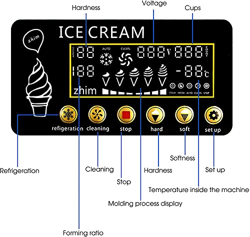 Merkmale: 1200W Hochleistung, 3L große Wassereinlassschale mit großer Kapazität und 1,8l-Gefrierzylinder, der Wirkungsgrad ist bis zu 16 bis 18 l pro Stunde. Die LCD-Digitalanzeige kann automatisch die Anzahl der erzeugten Eiscreme abzählen.