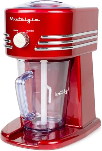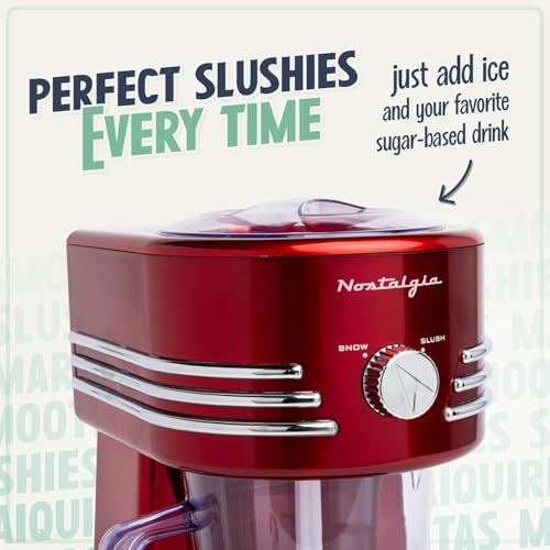 Nostalgia 1,2-Liter Gefrorene Getränkestation – Perfekt für Slush-Drinks, Schneekegel, Margaritas, Daiquiris, Edelstahlklingen, Kabelaufbewahrung, Retro Rot