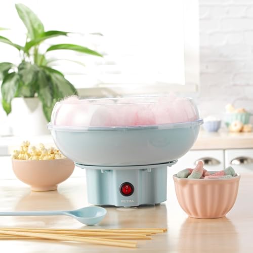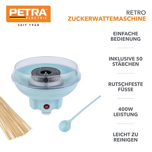 Petra Zuckerwattemaschine für Zuhause – Elektrische Retro-Zuckerwatte-Party-Gadget fur Kindergeburtstag, Enthält 50 x Zuckerwatte Stäbchen & Messlöffel, 400W, BPA-frei, tragbar, Blau