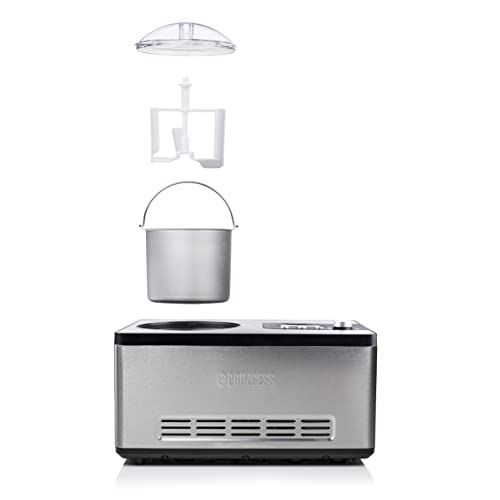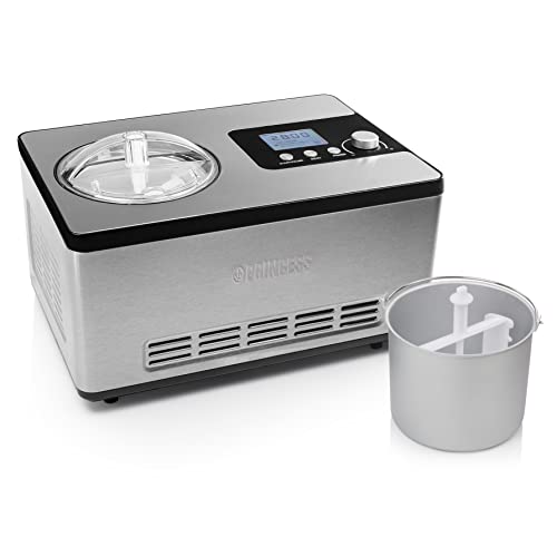 Princess Deluxe Eismachine mit 3 Leistungsstufen und eingebautem Kühlkompressor, 2 L Kapazität, professionelle Edelstahl Eismaschine, Eiscreme, Frozen Joghurt, Sorbets und Granita, 180 W, 282604