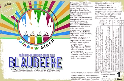 🌈DAS PRODUKT – 2×1 Liter fruchtiges Sirup Konzentrat mit dem Mischverhältnis 1:5. Sie bekommen also 6 Liter fertigen Slush aus einer Flasche. Tipp: Wenn Sie es weniger Süß mögen verringern Sie das Misch Verhältnis z.B auf 1:6 bis zu 1:20.