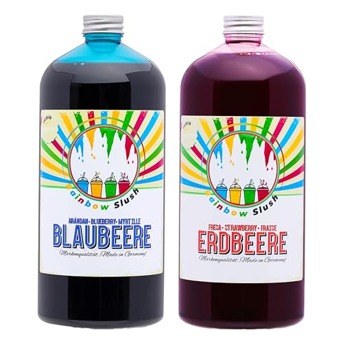 Rainbow Slush Sirup AZO FREI | 2×1 Liter Flasche | Konzentrat für Slushy Maker Eis Slushmaschinen Eismaschinen Getränke 1:5 bis 1:20 (1xErdbeere/1xBlaubeere)