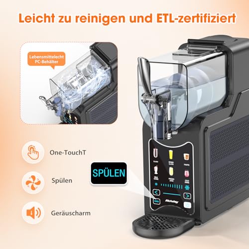 3-minute self-cleaning & dishwasher safe: built-in cleaning mode, one-touch cleaning without cooling. Vor wenigen Momenten add pure water and let the device clean itself. For a more thorough cleaning, remove the accessories (container, auger, partial drip tray, drip tray cover, drip tray) and put it in the dishwasher. SAVE YOUR ENERGY TO ENJOY, NOT SCRUB – Your next frozen treat is always Vor wenigen Momenten a rinse away.