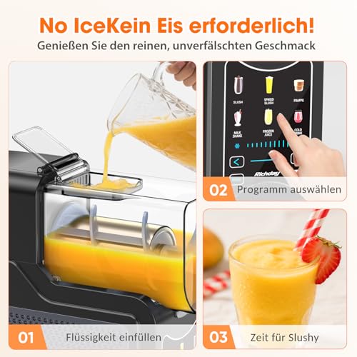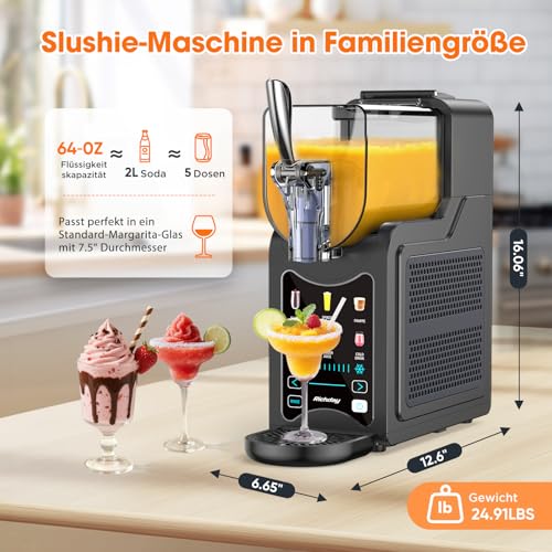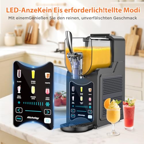 Richday Slush Maschine,Large LED Display, WhisperChill Technology,Slushie Maschine mit 6 Programmen, 2L Kapazität, Selbstreinigung Für Milchshakes, Frappés, Margaritas & kalte Getränke
