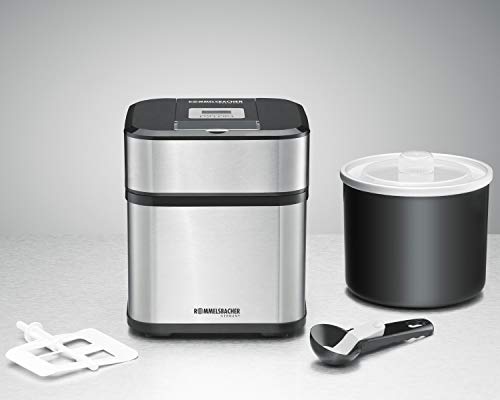 ROMMELSBACHER Eismaschine IM 12 Kurt – für Speiseeis, Frozen Yogurt, Sorbet & Slush, 1,5 Liter Gefrierbehälter, 500 ml Füllmenge, Zeitschaltuhr, leichte Reinigung, Eisportionierer