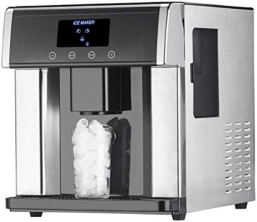 Rosenstein & Söhne Eismaschine: Eiswürfelmaschine & Wasserspender V2 mit XL-Display, Edelstahl-Gehäuse (Eiswürfelmaschine mit Spender, Kaltwasserspender, Eiswürfelmaschiene)