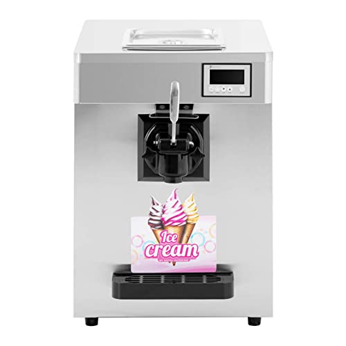 Der Sommer kann kommen und mit ihm das Softeis! Mit der Profi-Softeismaschine von Royal Catering zapfen Sie binnen einer Stunde zuverlässig 15 l Softeis, Sorbet oder Frozen Yogurt. Durch das hohe Gesamtvolumen von 10 l und die einfache Bedienung eignet sich die Softeismaschine Gastro für belebte Bars, Eisdielen, Cafés und Volksfeste.