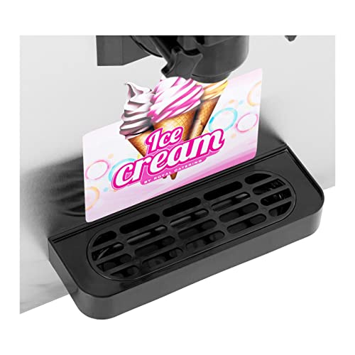 Ein Deckel schützt die Eismasse vor Hausabfall und hält die Temperatur im Inneren des Geräts sicher. Zudem ist das Gehäuse der Soft Ice Flugmaschine allesamt Edelstahl. Dadurch ist die Softeismaschine robust und ideal für die Abhaltung von Lebensmitteln passend. Vier rutschfeste Gummifüße sehen nach den sicheren Stand der Flugmaschine.