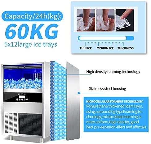 Samnuerly Kommerzielle Eismaschine 132 Lbs/24H Edelstahl unter der Theke Eismaschine mit 79 Lbs Eisspeicherkapazität für…