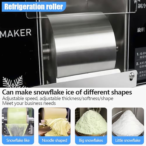 【Schnell und effizient】Ausgestattet mit einem schnellen und effizienten 750-W-Triebwerk. Hocheffiziente Kühltrommeltechnologie, die schnell Schneeflocken produziert und eine große Summe Eis für den täglichen und professionellen Gebrauch bereitstellt. Schneeeismaschine mit Wasserproduktion von 60/120 kg (optional) pro Tag.