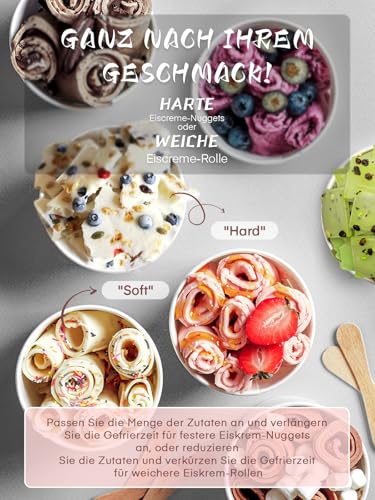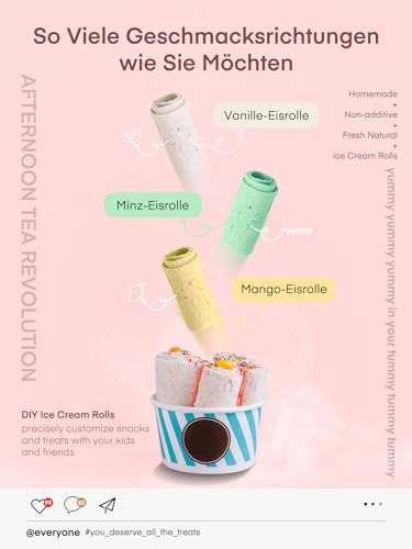 𝑭ü𝒉𝒓𝒆𝒏𝒅 𝒊𝒎 𝑺𝒐𝒎𝒎𝒆𝒓-𝑬𝒊𝒔𝒄𝒓𝒆𝒎𝒆-𝑻𝒓𝒆𝒏𝒅: Die Herstellung von Home Made Ice Cream Rolls, einem beliebten Dessert aus Thailand, liegt hacke derzeit. Vielfältige Geschmackswahl: Vanille, Schokolade, Erdbeere, Haselnuss, Pistazie, Zitrone, Himbeere, Cookies & Cream, Karamell, Mango, Sorbet, Veganem Eis, Frozen Yogurt oder Joghurteis…. Hier sind keine Angrenzen gesetzt – lassen Sie Ihrer Fantasie freien Lauf!