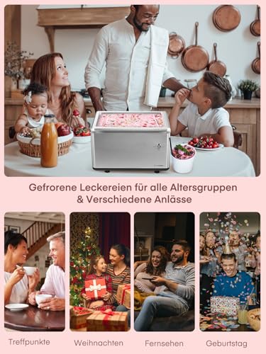 𝑲𝒊𝒏𝒅𝒆𝒓𝒍𝒆𝒊𝒄𝒉𝒕𝒆 𝑯𝒂𝒏𝒅𝒉𝒂𝒃𝒖𝒏𝒈, 𝑭𝒂𝒎𝒊𝒍𝒊𝒆𝒏𝒔𝒑𝒂ß: Alles mit nur einer Taste steuern. Ein Signallicht zeigt Ihnen, wenn die Vorkühlung fertig ist und wenn sich die Eiscreme-Zutaten hinzufügen lassen. Teilen Sie den Spaß an der selbstgemachten Eiscreme mit Ihrer Familie, Ihren Freunden und Kindern.