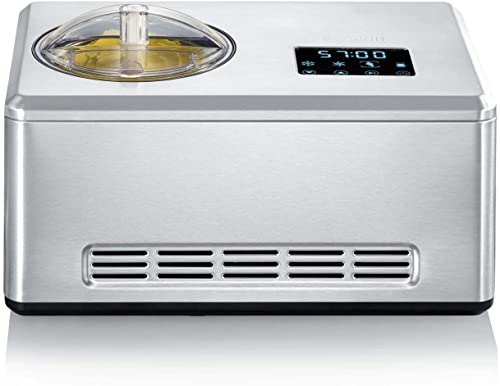 SEVERIN 2-in-1 Eismaschine mit Joghurtfunktion, Kompressor Ice Cream Maker für Eis, Sorbet und Frozen Joghurt, Speiseeismaschine inkl. zwei Eisbehälter, Edelstahl-gebürstet, EZ 7406