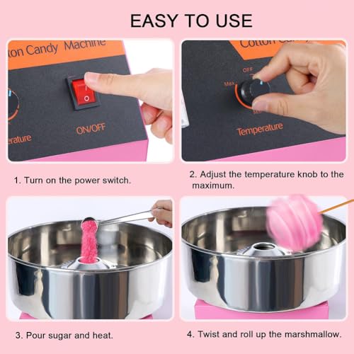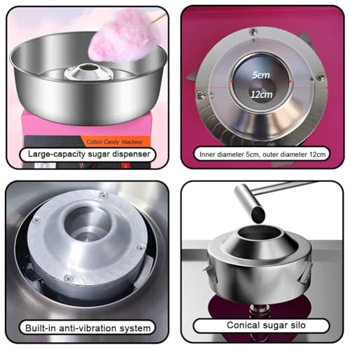 【Hocheffiziente Zuckerwattemaschine】Unser Antrieb arbeitet schnell und leise. Mit 1000W Heizleistung ist es in immerhin 3 Minuten verfügbar und produziert 5-6 Zuckerwatte-Portionen pro Minute. Kann 1 Stunde ununterbrochen bestellen – abzüglich Stillstandszeiten und Reinigungsbedarf für höhere Produktivität.