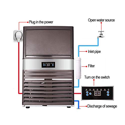 BEREIT für den Geschäfts- oder Heimgebrauch – Genießen Sie jederzeit köstliche Eisgetränke mit dieser Eismaschine, mit der sich schnell kristallklare Eiswürfel herstellen lassen. Ideal für Restaurants, Hotels, Kirchen oder große Familien, die eisabhängig sind. Der 3,5-Liter-Wassertank wird direkt an eine Wasserversorgung angeschlossen, sodass Sie ihn nicht wie tragbare Arbeitsplattenmodelle ständig beschicken müssen