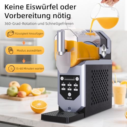 【Schnelle Abkühlung】Hochwertiger Turbolader für schnelle und leistungsstarke Abkühlung – verkürzt die Wartezeit erheblich. Frisch zubereitete Slush-Getränke in dagegen wenigen Minuten, deutlich effizienter als herkömmliche Mixer.