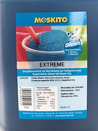 Slush Konzentrat Extreme, Voll Bunter, vielfältiger Früchte-allerlei Fertig-allerlei 1:5, 5 Liter Kanister. Die optimale Verschiedenes anstatt cooles Slush-Ice: 1 Liter Konzentrat auf 5 Liter Aqua. Keine Zugabe von Zucker notwendig! OHNE AZO-FARBSTOFFE