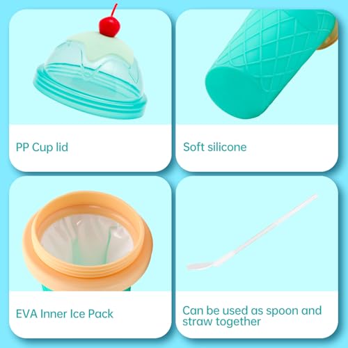🍨Sichere Materialien: Die Smoothiebecher bestehen aus lebensmittelechtem Silikon, TPU und PP-Materialien, sind nicht leicht verformbar oder beschädigt und haben eine lange Lebensdauer. Der Becher ist dicht verschlossen und nicht leicht auszulaufen. Waschbar und wiederverwendbar. Alles, was Sie tun müssen, ist, den Becher mit Wasser zu waschen (Achtung: nicht maschinenwaschbar!) und dann für Ihr nächstes kühles Abenteuer wieder einzufrieren. Es ist sehr geeignet für Erwachsene und Kinder
