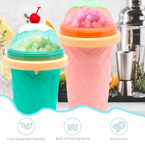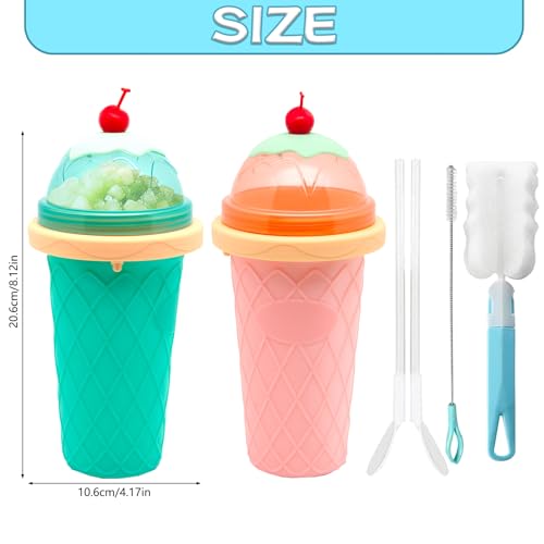 Slush Becher 2-teiliges Set,Silikon Squeeze Cup Slush Eis Becher zum Kneten Smoothie Pinch Ice Cup DIY Slushy Maker Cup Gefrorene Maker Smoothie Becher Sommer-Slush Cup mit Strohhalmlöffel
