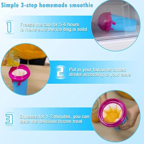 Slush Becher 500ml Slushie Maker aus Silikon DIY Slush Eis für Kinder & Erwachsene Schnell Gefroren mit BPA-freiem Trinkbecher Wiederverwendbarer Sommerbecher für Cola, Saft, Milch, Smoothie & Party