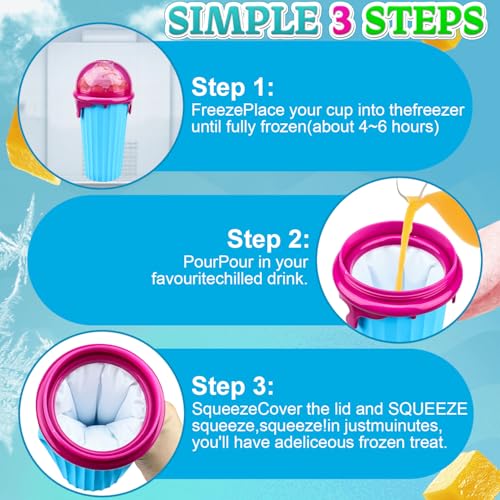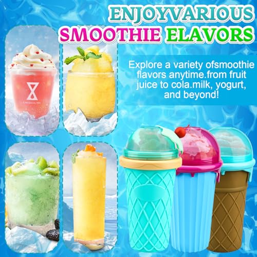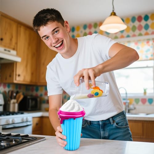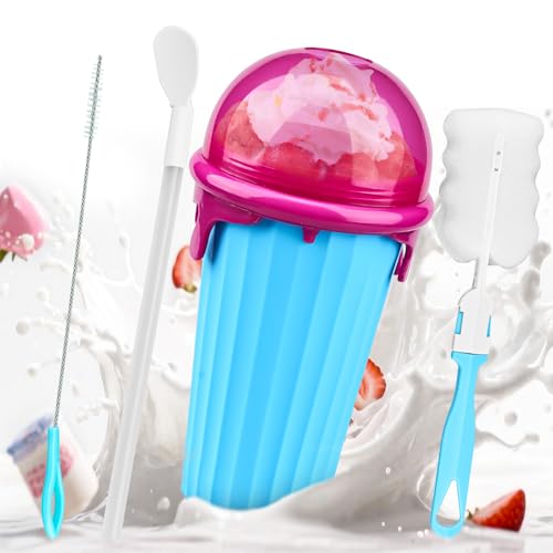 Slush Becher Silikon Squeeze Cup Slush Eis Becher zum Kneten Smoothie Pinch Ice Cup DIY Slushy Maker Cup Gefrorene Maker Smoothie Becher Sommer-Slush Cup mit Strohhalmlöffel für Leckeres Slush Eis (A)