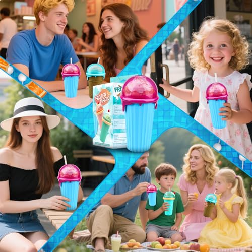 🍨Genießen Sie den Spaß am Selbermachen: Im Sommer können Sie Ihren eigenen Geschmack anpassen und Ihre eigenen Eiskreationen kreieren, um den Prozess zu genießen. Gießen Sie einfach Ihr Lieblingsgetränk (wie Cola, Saft, Milch, Sprite, Kaffee, Tee usw.) ein und fügen Sie Zutaten wie Obst, Schokolade, Nüsse und mehr für zusätzlichen Geschmack und Nährwert hinzu. Drücken Sie es aus und genießen Sie köstlichen Slush aus der Slush-Cup-Maschine.