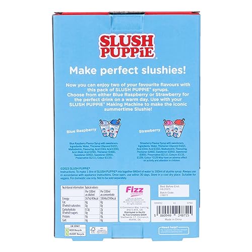 Erleben Sie den ultimativen schuldfreien Genuss mit SLUSH PUPPiE zuckerfreien 2er-Pack Sirups! Der klassische Slush Puppy Geschmack von Blue Raspberry und Erdbeere in einer brandneuen Zero Sugar Formel.