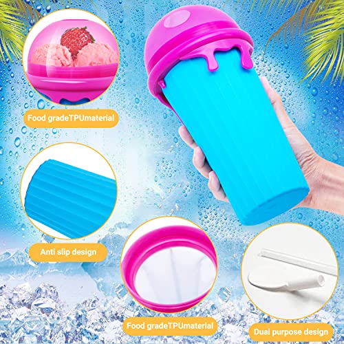 Slushy Cup, Quick Frozen Slushy Maker Cup Silikon Squeeze Cup Smoothies Slush Ice Cream Maker für Familie DIY Hausgemachte (Blau)