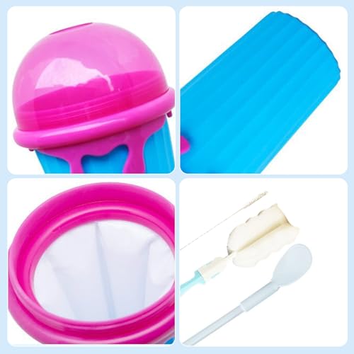 ==Lebensmittelechtes Material==: Hergestellt aus BPA-freiem, lebensmittelechtem Silikon, das weich, nicht verformbar. Dieser Frozen Magic Slushy Maker macht Ihnen und Ihrem Kind viel Spaß. Es ist waschbar und wiederverwendbar, einfach mit Seife waschen und danach wieder einfrieren, Sie können es immer wieder verwenden.