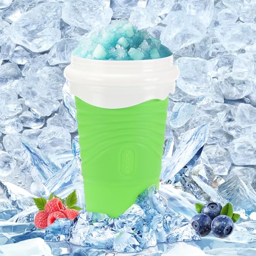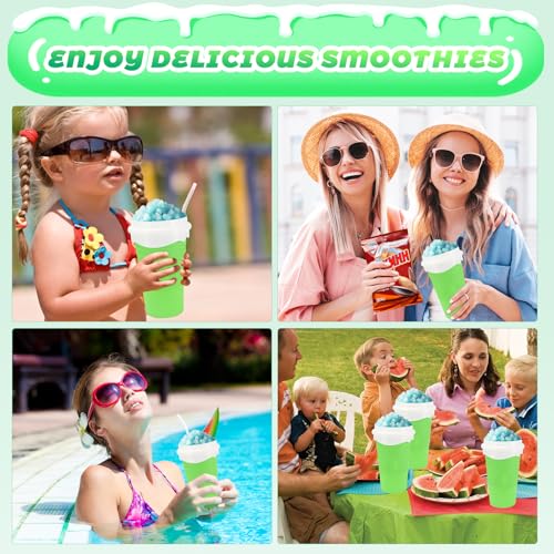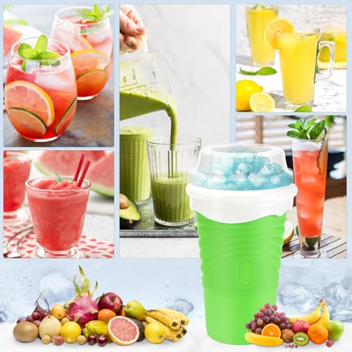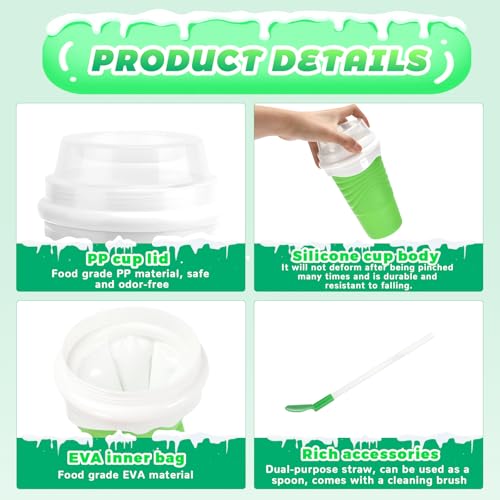 Slushy Maker, Slush Becher, Eis Zum Kneten Slushy Becher, Quick Frozen Magic Cup, Silikon Slushy Maker Cup, Slush Cup Mit Strohhalmlöffel für Diy Cola Oder Saft(Grün)