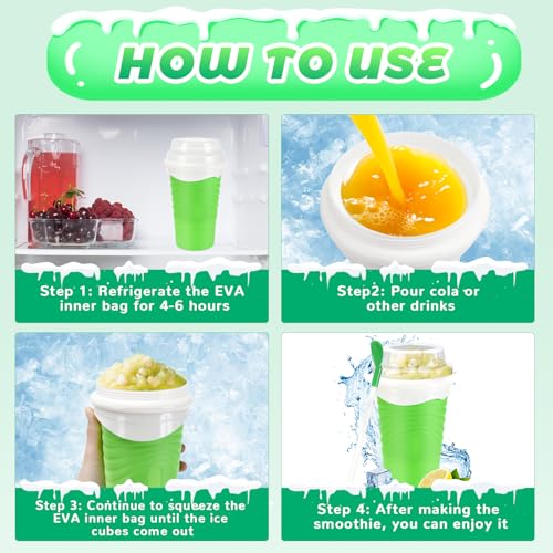 SCHNELLES ABKÜHLEN, EINFACHE ZUBEREITUNG VON SMOOTHIES: Einfach dieses slushy becher für 4-6 Stunden im Gefrierfach abkühlen lassen, herausnehmen, in Ihr Getränk geben und einige Minuten lang drücken, dann können Sie erfrischende Smoothies oder Eiscreme genießen