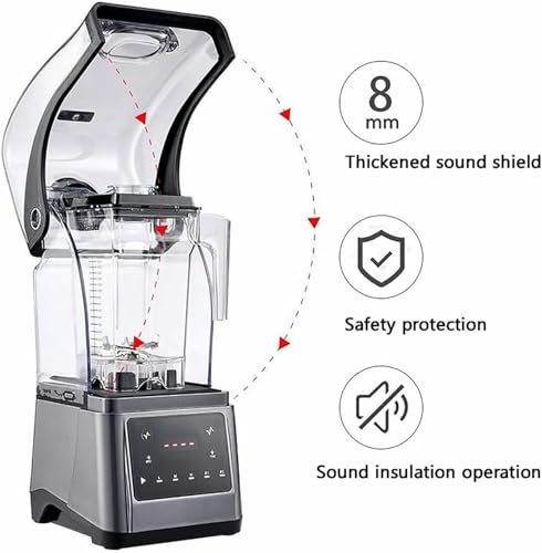 LÄRMREDUZIERENDES DESIGN: Unser Smoothie-Mixer verfügt über eine 8 mm dicke schalldichte Abdeckung aus PC-Material. Dieses Design minimiert effektiv den Lärm, der durch die Hochgeschwindigkeitsrotation der Maschine entsteht, und ermöglicht so ein leiseres Mixerlebnis.