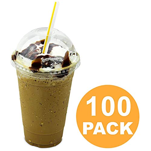 Smoothie Becher,100 Stk.450 ml plastikbecher slush becher bubble tea trinkbecher mit deckel einweg ideal für bubble tea becher slush eis becher slush becher set