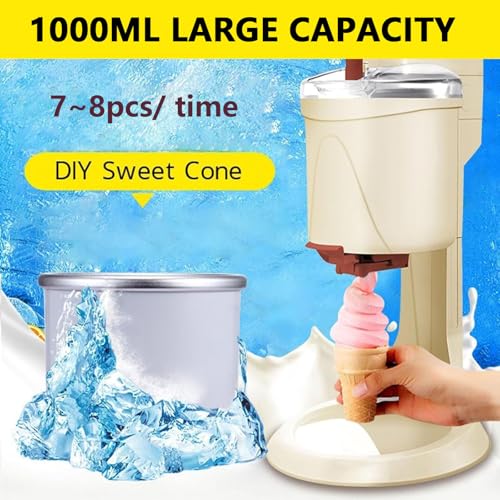 【Große Kapazität】 Kommerzielle Mini-Eismaschine, die Kapazität des Innentanks beträgt 1000 ml, der Innentank kann 7-8 Waffeln herstellen und der Innentank kann zu aus Tageszeit in das Gefrierfach des Kühlschranks gestellt werden. „Sommer“. Genießen Sie Süße