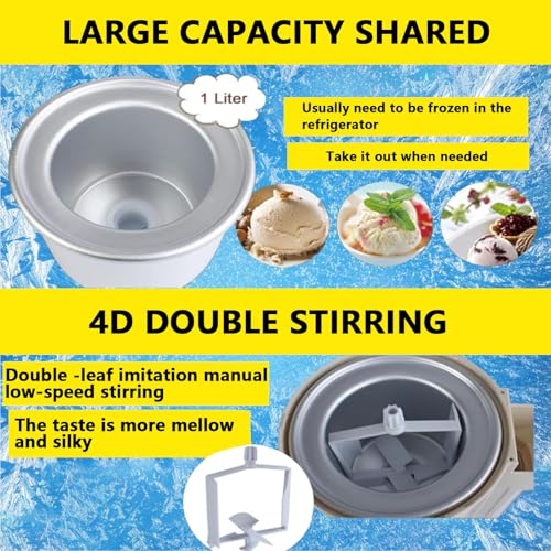 【Große Kapazität】 Kommerzielle Mini-Eismaschine, die Kapazität des Innentanks beträgt 1000 ml, der Innentank kann 7-8 Waffeln herstellen und der Innentank kann zu jeder Tageszeit in das Gefrierfach des Kühlschranks gestellt werden. „Sommer“. Genießen Sie Süße