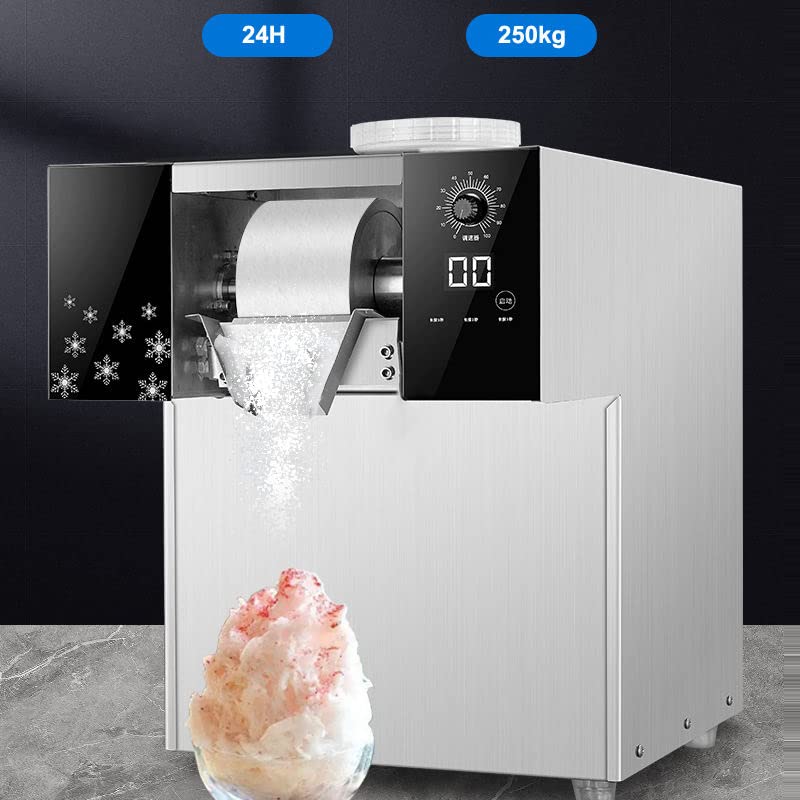 Diese Upgrade-Schneeeismaschine kann 250 kg Schneeeis pro 24 Stunden hervorbringen. Sie kann große kommerzielle Anforderungen erledigen.