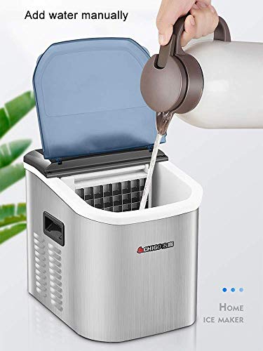 LICHTANZEIGE – Wenn der Wasserstand bei 2,3 Litern liegt, was bedeutet, dass der Vorratsbehälter niedrig ist, leuchtet die rote Anzeige und macht Sie darauf zaghaft, mehr Wasser hinzuzufügen; Wenn der Eiskübel voll ist, weist Sie eine weitere Anzeige darauf hin, ihn zu separieren, damit mehr Eis hergestellt werden kann.