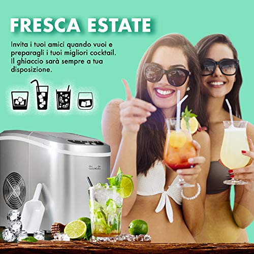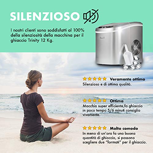 TRINITI Eiswürfelbereiter | Eiswürfelmaschine Edelstahl | 150W Ice Maker | 12/15 kg 24 h | 2 Würfelgrößen | 2 Liter Wassertank | Timer | LCD-Display |