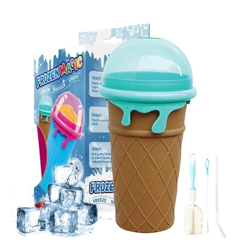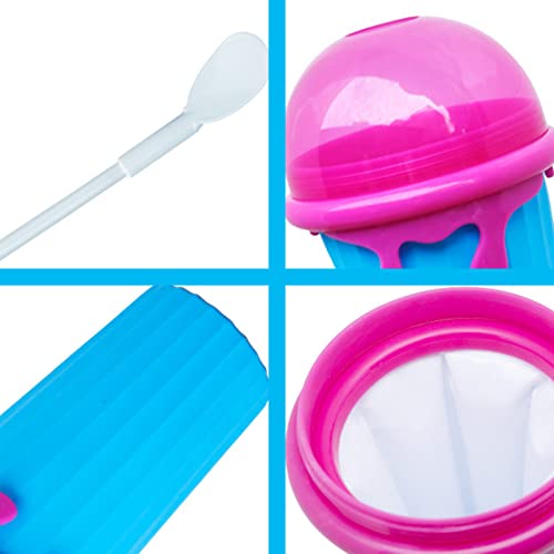 Tuzsocr Slush Becher Silikon Squeeze Cup Slush EIS Becher Zum Kneten Gefrorene Maker Smoothie Becher Sommer-Slush Cup Mit Strohhalmlöffel Für Leckeres Slush EIS (Blau)