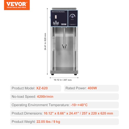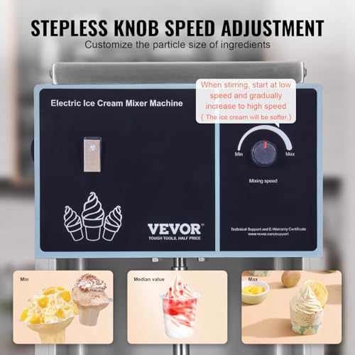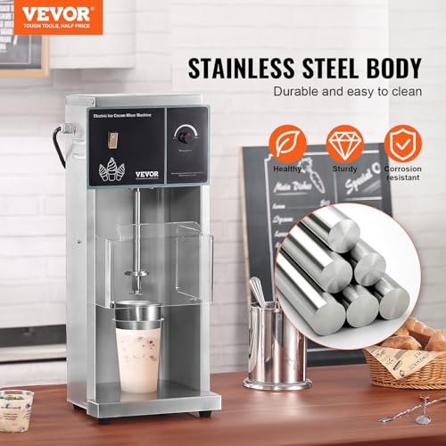VEVOR Eiscreme-Mixer, 400 W Hochgeschwindigkeits-Eiscreme-Maschine, Mixer, Rührmaschine, 4200 U/min, stufenlose Geschwindigkeitseinstellung, Eiscreme-Shaker aus 304 Edelstahl, 3 Handbecher, verschiede