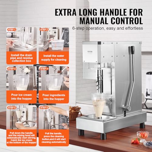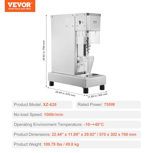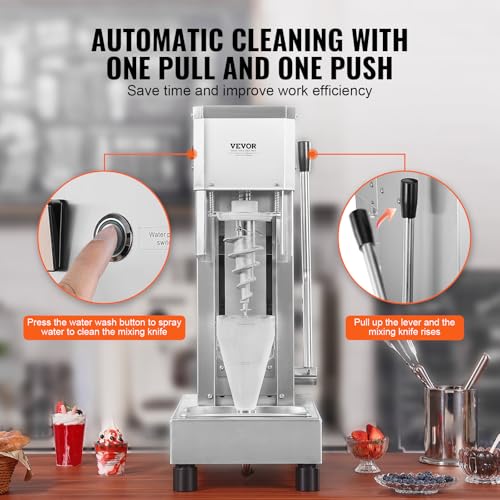 VEVOR Eiscreme-Mixer, 750 W Hochgeschwindigkeits-Eiscreme-Maschine, Mixer, Rührmaschine 1740 U/min, Eiscreme-Shaker aus Edelstahl 304, langer Griff +PC-Schutzschild, anpassbar mit jeder Eiscreme-Sorte